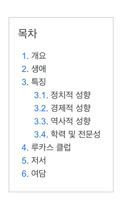 슈카월드의 나무위키, 그의 성향에 대한 글은 거의 없다. 정치적 중립을 지향한다. 윤루카스의 나무위키, 대부분이 그의 성향과 관련된 글들이다.